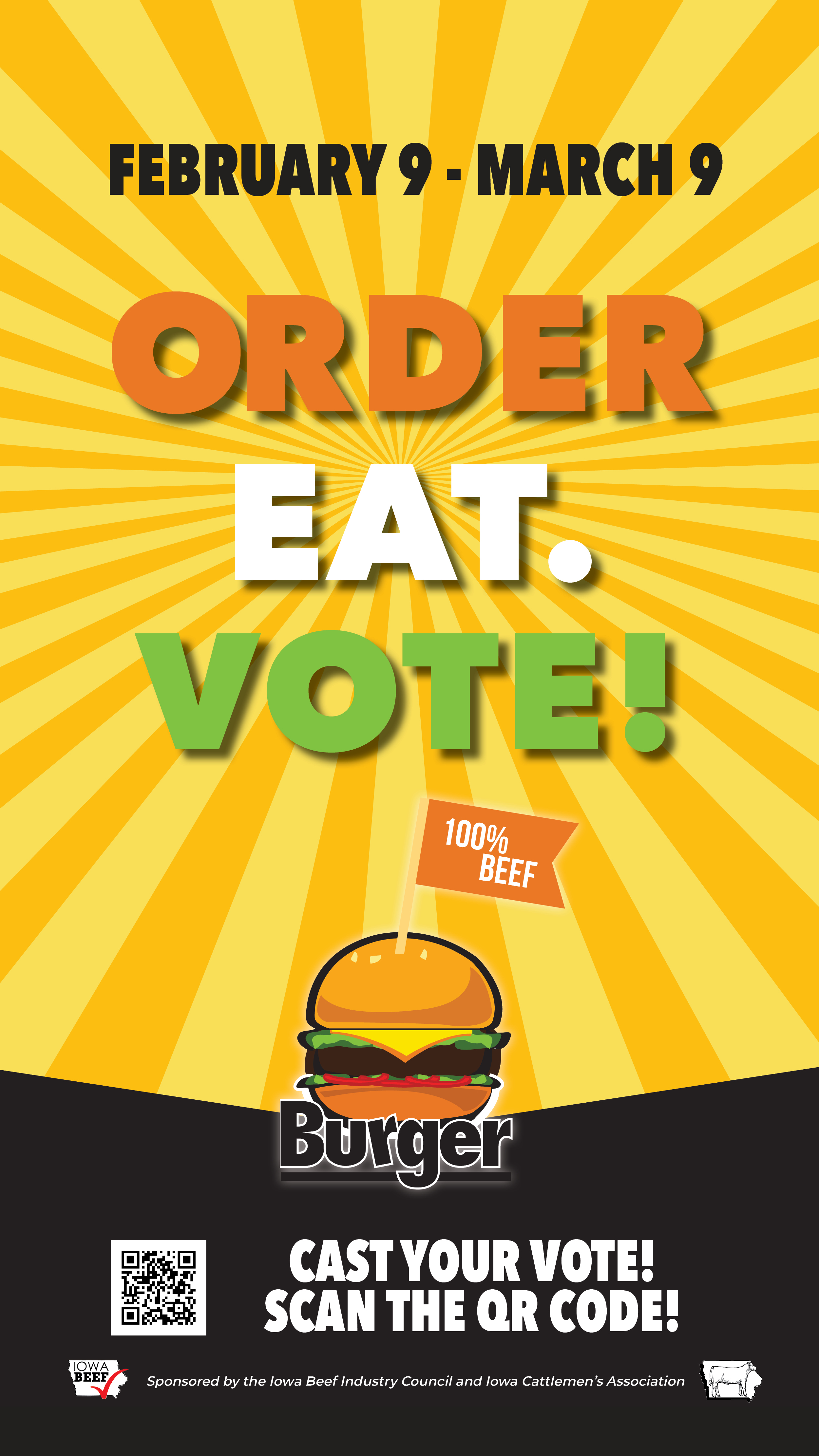 These materials can be used by restaurant owners and/or cattlemen to help promote the 2026 Iowa's Best Burger Contest in your restaurant, town, or county. If you are in need of additional materials, please contact us by email at [email protected] or phone at 515-296-2305.