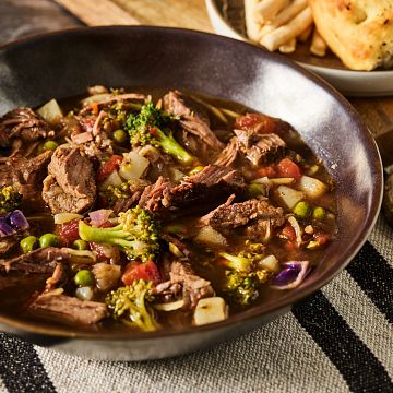 Enjoy all the satisfying flavors of beef pot roast in a soup. Take a short cut with frozen vegetables for an easy to make meal.