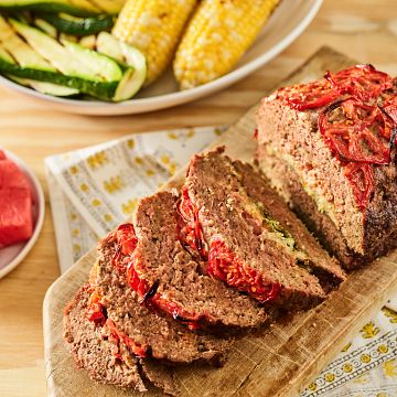 Conceived by cattle farmer and blogger, Anne Burkholder, this meatloaf is different than the rest with an unexpected twist of herb stuffing mix and tomatoes on the inside.