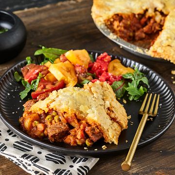 A easier version of an American classic. Tender braised stew meat with vegetables and flavorful spices in a flaky crust.