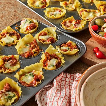 This creative, bite-sized take on lasagna uses ground beef, spices and cheese to recreate traditional, layered lasagna into a small bite party sensation.